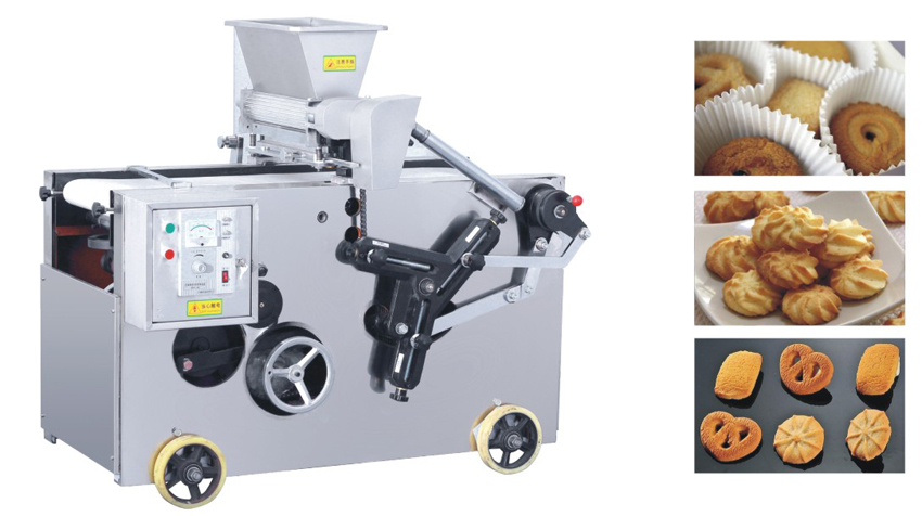 曲奇糕點機,是通過面團擠出成形,能生產多種獨特花式點心和曲奇餅干坯的成形機,具有技術先進、結構緊湊、多功能、操作簡單等特點,深受廣大用戶所歡迎,也是投資者目前市場最理想的新型儀器機械之一。該機具有多種模具,能生產幾十種花式曲奇餅干,用戶可根據需要自行調節選擇。成形的花式點心與曲奇餅干,形態獨特、花紋清晰、造型美觀。該機生產的生坯采用熱風旋轉爐及隧道爐烘烤均可